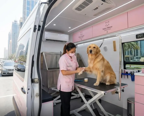 Welcome to Miss Meow Grooming, the premier pet grooming service in the UAE, serving Dubai, Sharjah, and Abu Dhabi! We bring top-notch grooming services right to your doorstep with our state-of-the-art mobile grooming vans. Our professional groomers ensure your furry friends receive the best care in the comfort of your own home.