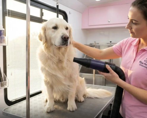 - Comfort: Your pet is groomed in a familiar environment, reducing anxiety.