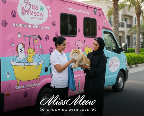Welcome to Miss Meow Grooming, the premier pet grooming service in the UAE, serving Dubai, Sharjah, and Abu Dhabi! We bring top-notch grooming services right to your doorstep with our state-of-the-art mobile grooming vans. Our professional groomers ensure your furry friends receive the best care in the comfort of your own home.